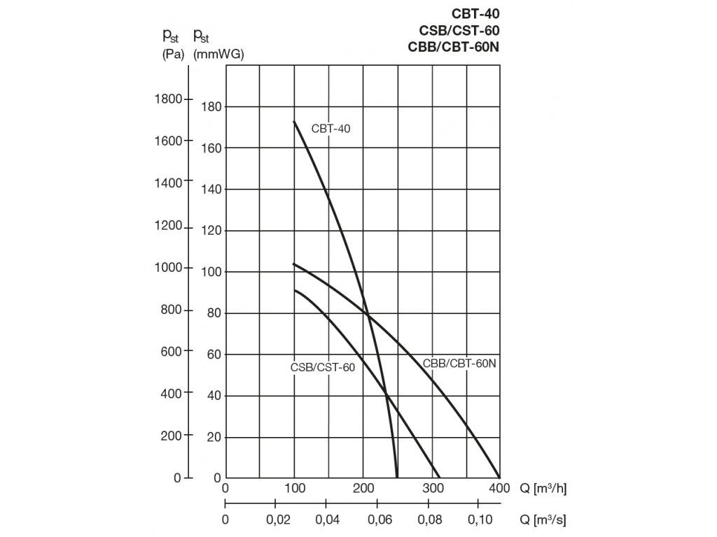 Spirální skříň radiálního ventilátoru je odlita ze slitiny Al, opatřena šedým epoxidovým lakem, max. teplota dopravované vzdušiny 120 ?C (ventilátory CST, CBT a CBB), 70 ?C (CSB – 60) nebo 80 ?C (CBT – 125, 160 a 170).