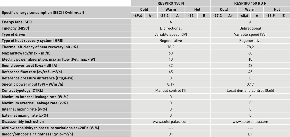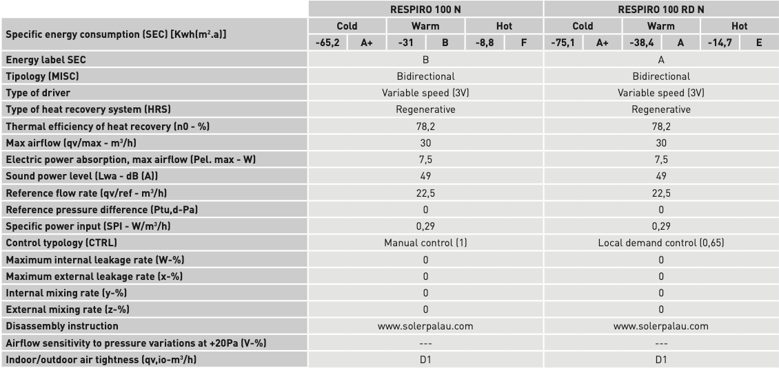 Indoor microclimate and local decentralized units Soler & Palau Respiro N