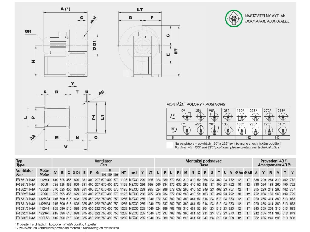 Jednostranně sací radiální průmyslový ventilátor FR 632/6 N 1,5 kW je vybaven motorem napřímo. Průmyslový radiální ventilátor FR 632/6 N 1,5 kW je vyroben z ocelového plechu chráněného kataforezním základním nátěrem a polyuretanovým lakem. Radiální ventilátor FR 632/6 N 1,5 kW s motorem napřímo je navržen pro trvalý provoz, teplota přepravovaného vzduchu je od -20 °C do +60 °C. Na poptávku je možné dodat ventilátor ve speciálním provedení - až do 150 °C nebo také v nevýbušném ATEX provedení.