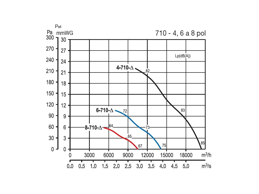 Hluk emitovaný ventilátorem je uveden v tabulkách jako hodnoty akustického tlaku ve vzdálenosti 1,5 m na straně sání a výtlaku. Pro získání hodnot akustického výkonu v oktávových pásmech je nutno k hodnotě akustického tlaku přičíst korekční faktor v dole uvedených tabulkách.