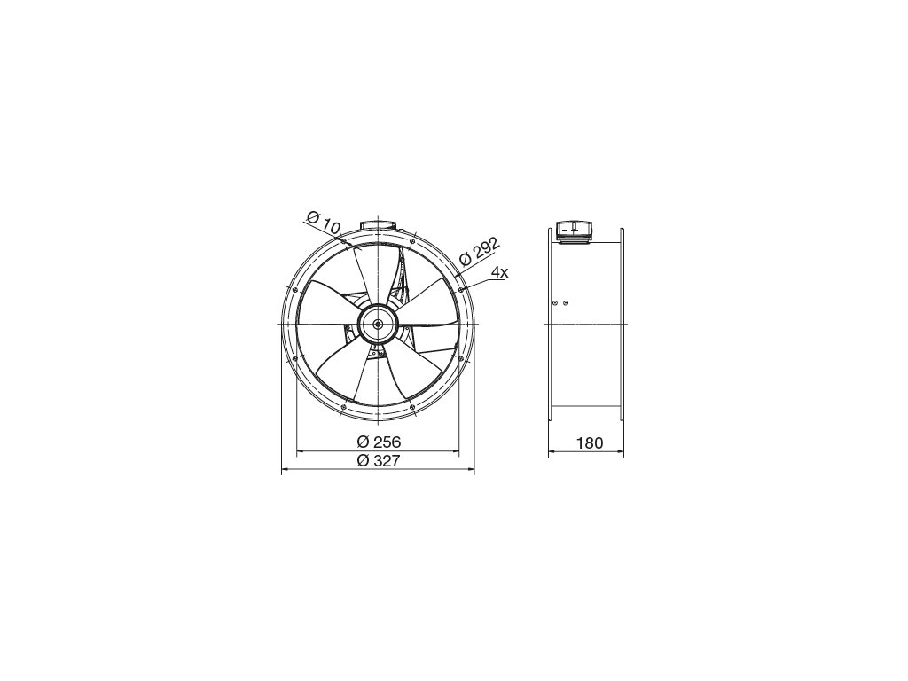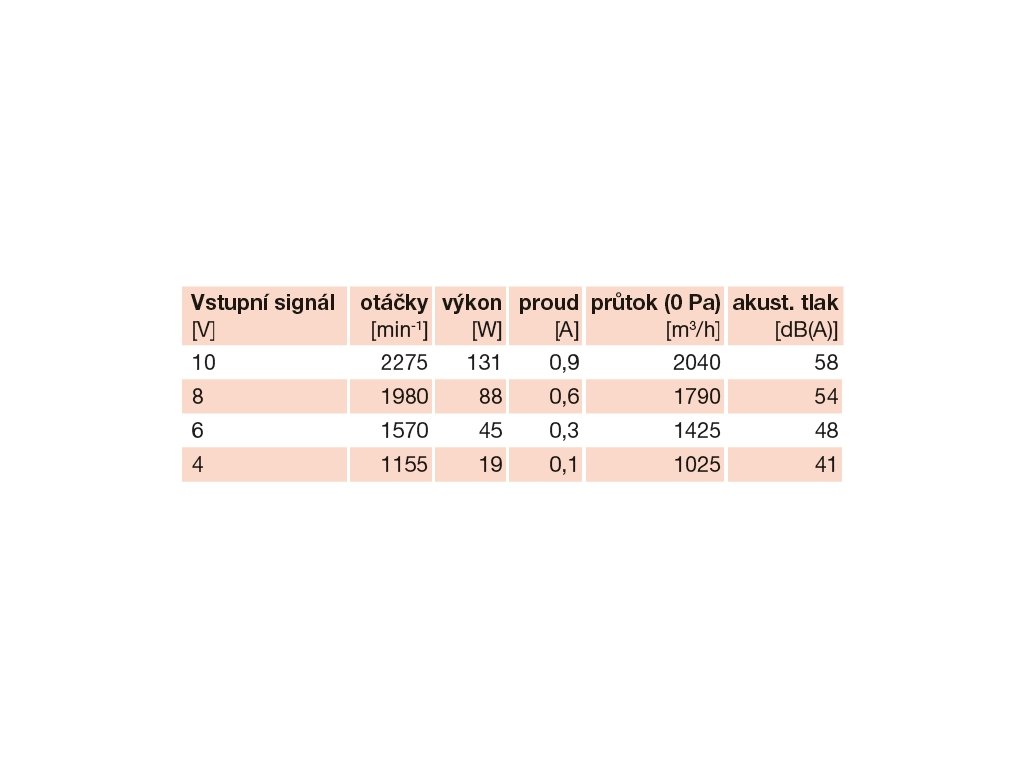 EC motor s tepelnou ochranou proti přetížení. Ložiska jsou kuličková. Krytí ventilátoru IP44. Pracovní teplota v rozmezí -20 ° až 40 °C.