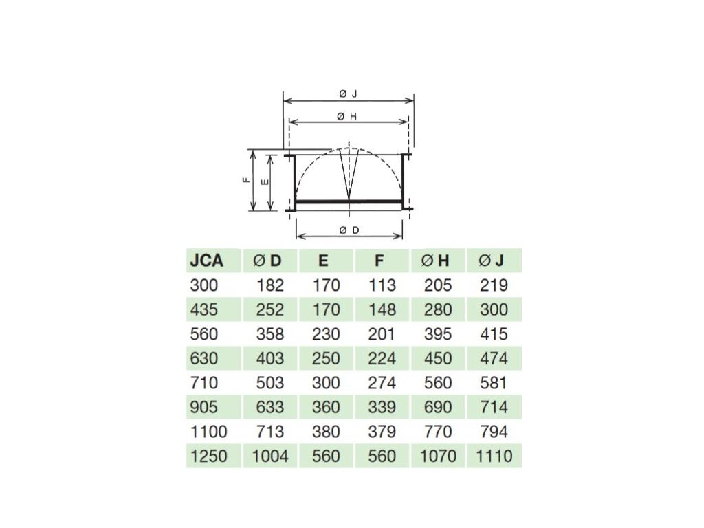 Zpětná samotížná klapka JCA 630 pro střešní ventilátory typu TH, CRVB / CRVT, CRHB / CRHT a HCTB / HCTT. Samotížná zpětná klapka je vyrobena z ocelového pozinkovaného plechu.
