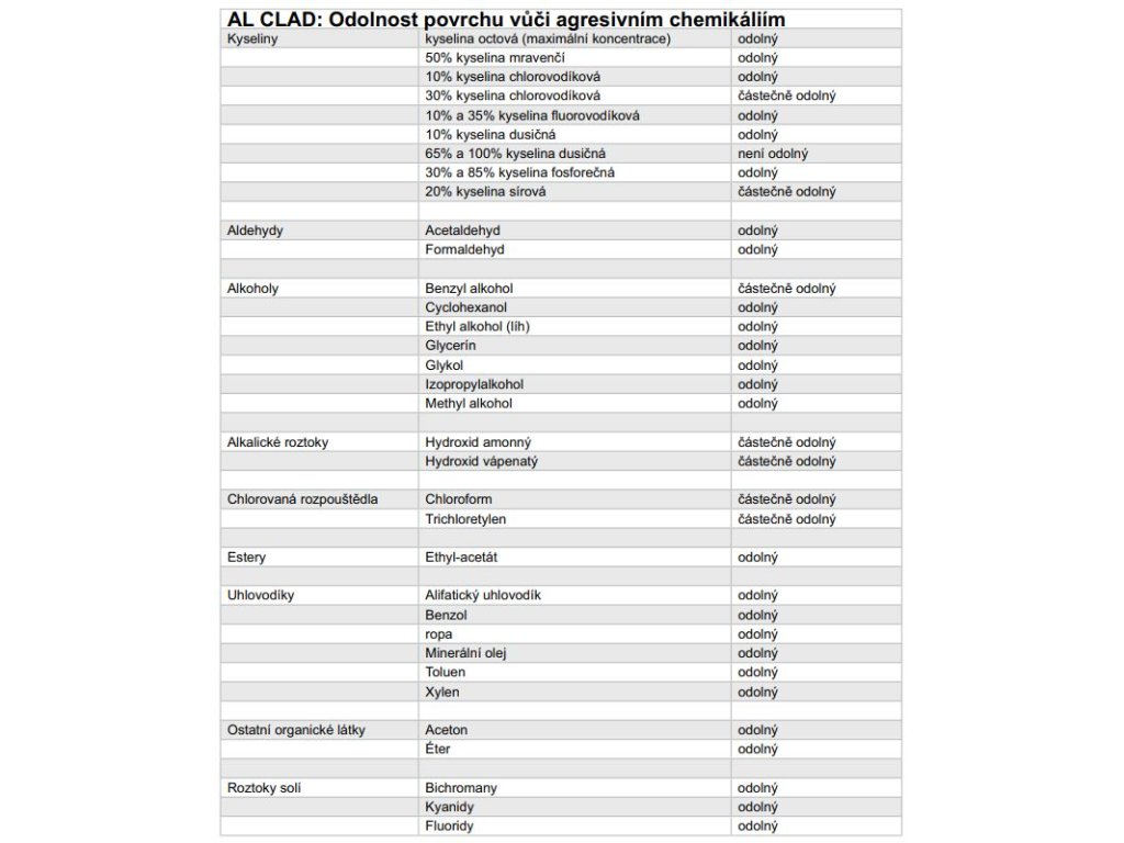 Díky speciální povrchové úpravě je AL CLAD UV odolný. Díky tomuto provedení je AL CLAD SYSTEM vhodný pro vnitřní i vnější použití.