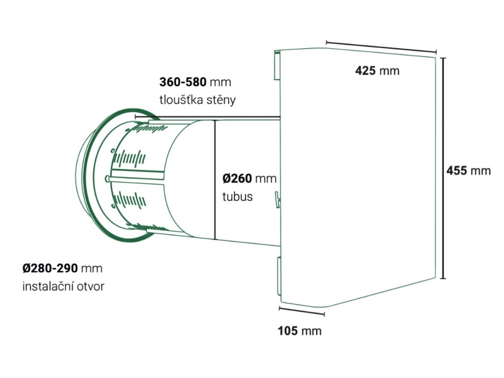 | Instalační otvor [mm]: | 280 až 285 |