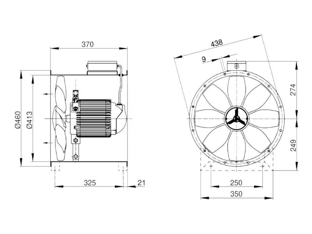 Axiální potrubní ventilátor DZR 40/4 B je vhodný pro strojní odsávání, odvětrávání výstavních prostor, dílen nebo výroben. Potrubní axiální ventilátor DZR 40/4 B má axiální oběžné kolo, skříň ventilátoru je vyrobena z ocelového pozinkovaného plechu. Třífázový axiální potrubní ventilátor DZR 40/4 B se instaluje jak ve vodorovné, tak i svislé poloze. Provozní teplota axiálního potrubního ventilátoru s přírubami je -20 až 60 °C.