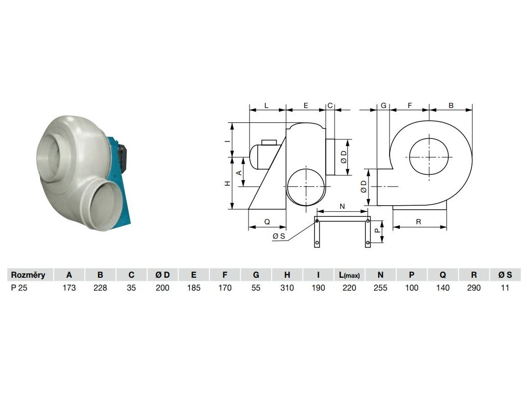 Kyselinovzdorný radiální ventilátor P 254 400 V PE PTC je určen do chemického průmyslu, petrochemii a laboratoře. Radiální ventilátor P 254 400 V PE PTC pro agresivní prostředí má skříň vyrobenou litím z PE nebo PEel (na dotaz je možné dodat z PP, Ppel nebo PVC). Teplota přepravovaného vzduchu je -15 °C až +70 °C, teplota okolí je +40 °C.