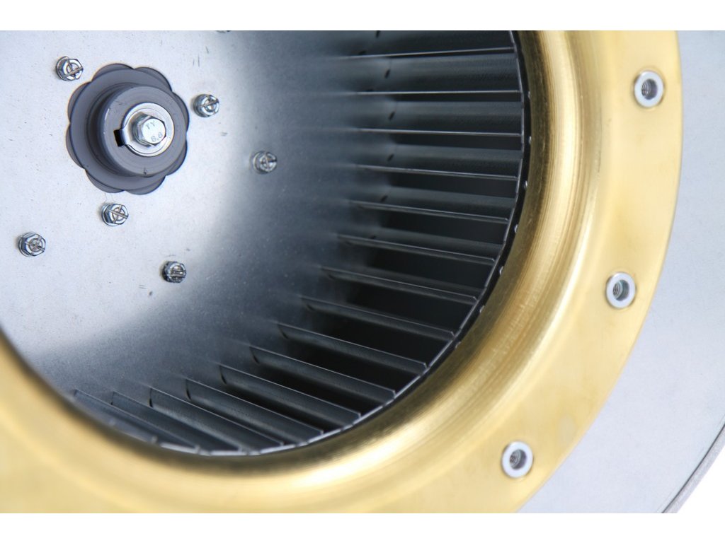 Oběžné kolo ventilátoru je radiální s dopředu zahnutými lopatkami.