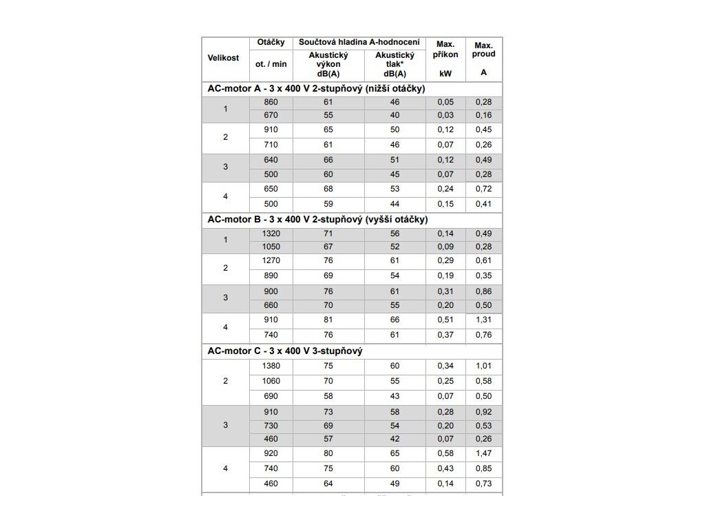 Motor jednotky: | A - 3x400V (2-stupňový), nižší otáčky |