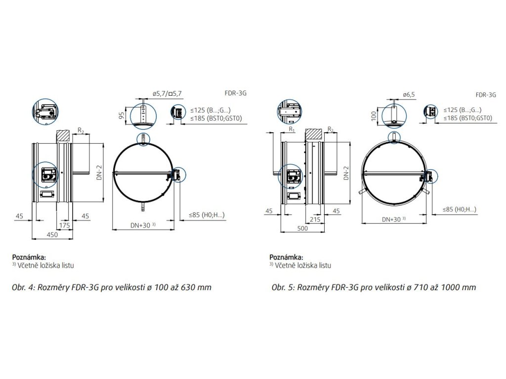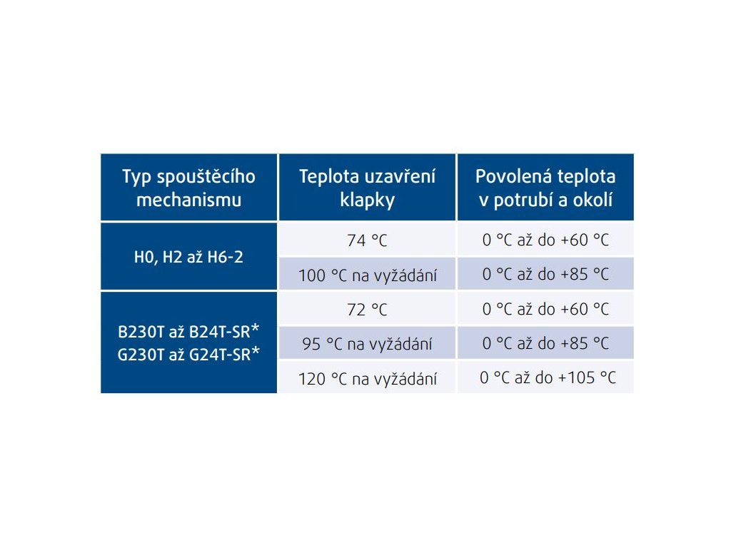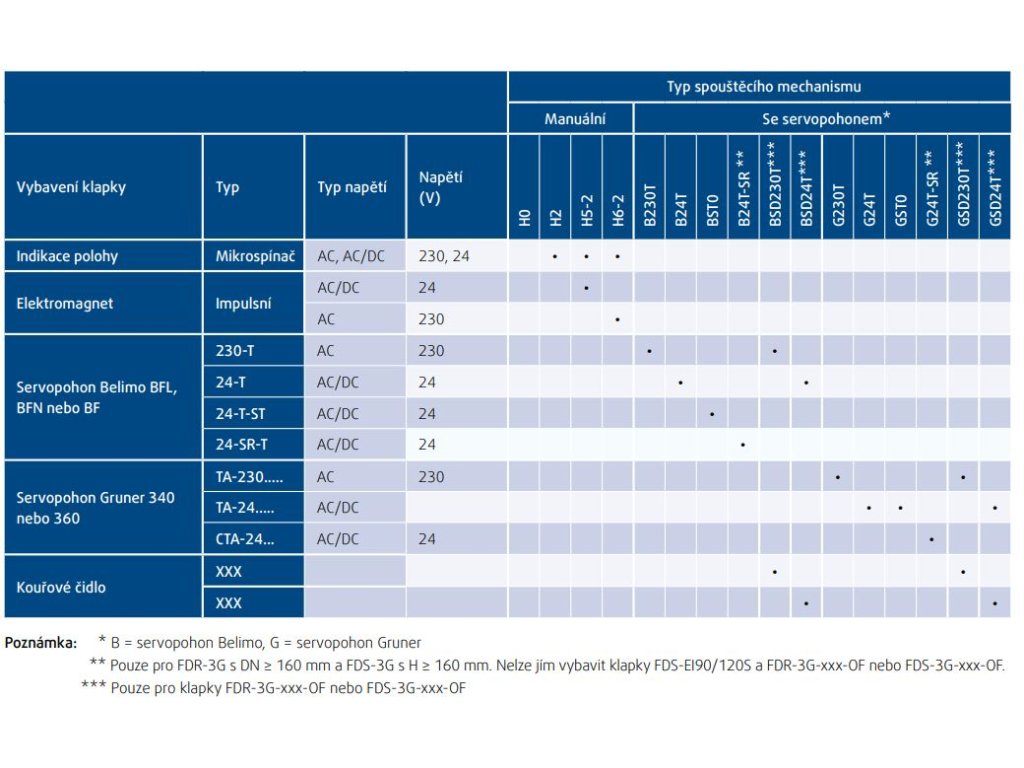 - B24T-W - kruhová požární klapka se servopohonem Belimo 24V (AC/DC) s pružinou a ovládáním 0-10V, vybavena termoelektrickým spouštěcím čidlem, součástí servopohonu jsou i pomocné spínače se signalizací polohy listu klapky a kabel pro komunikační jednotku.