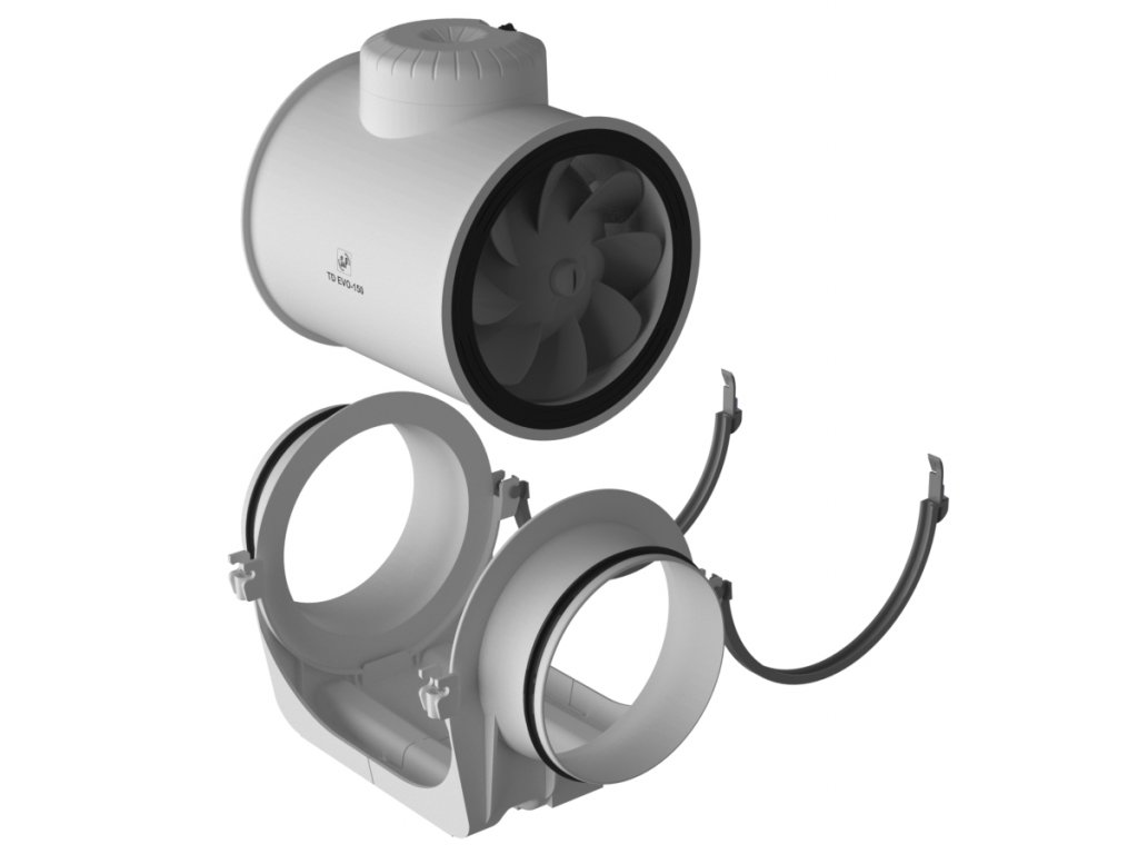 Diagonální potrubní ventilátor TD-EVO 250 má střídavý motor s trojím vinutím, což umožňuje provoz s trojími otáčkami. Skříň ventilátoru je vyrobena z tvrzeného plastu. Skříň se skládá z montážní lišty s dvěma hrdly, opatřenými těsněním a motoru, který je s hrdly spojen rychloupínacími sponami. Oběžné kolo ventilátoru TD-EVO 250 je vyrobeno z plastu.