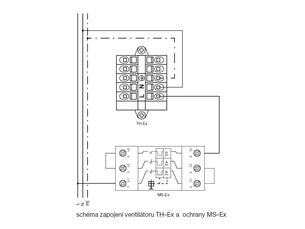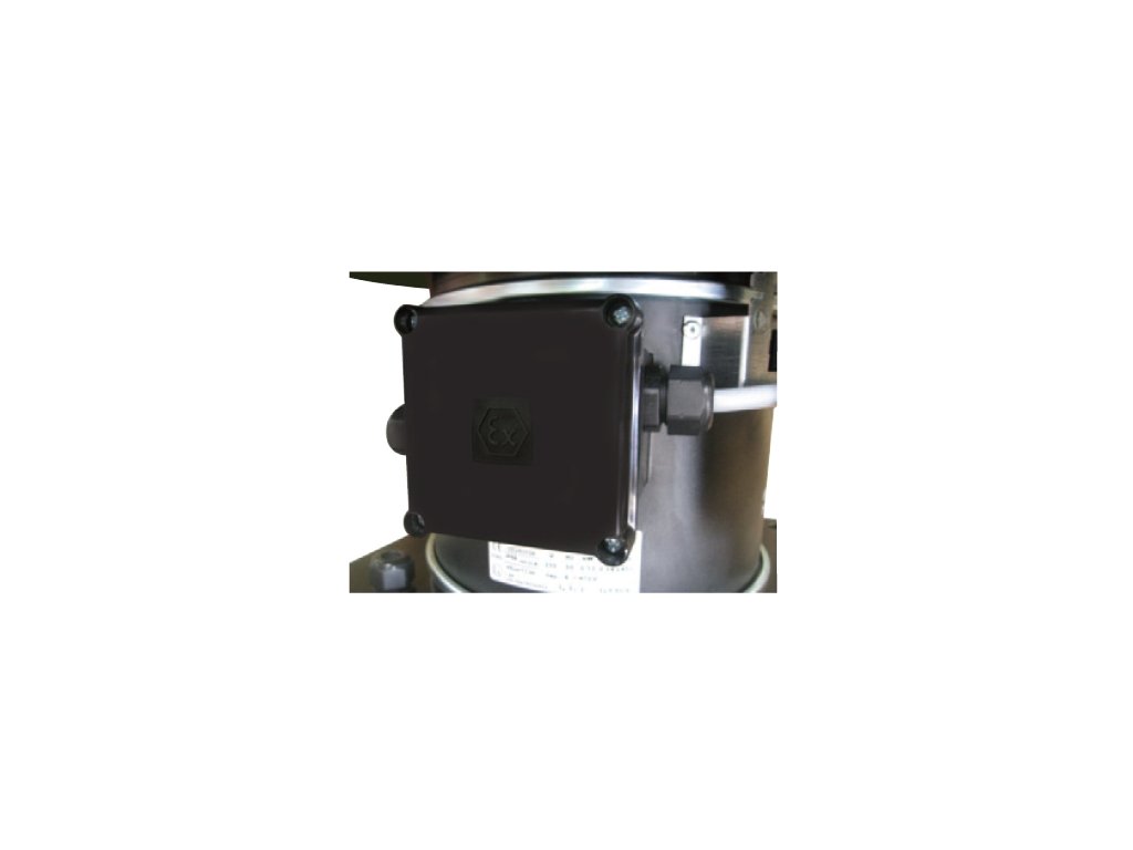 Svorkovnice je v nevýbušném provedení umístěna na motoru včetně nevýbušného kondenzátoru. Krytí IP55.
